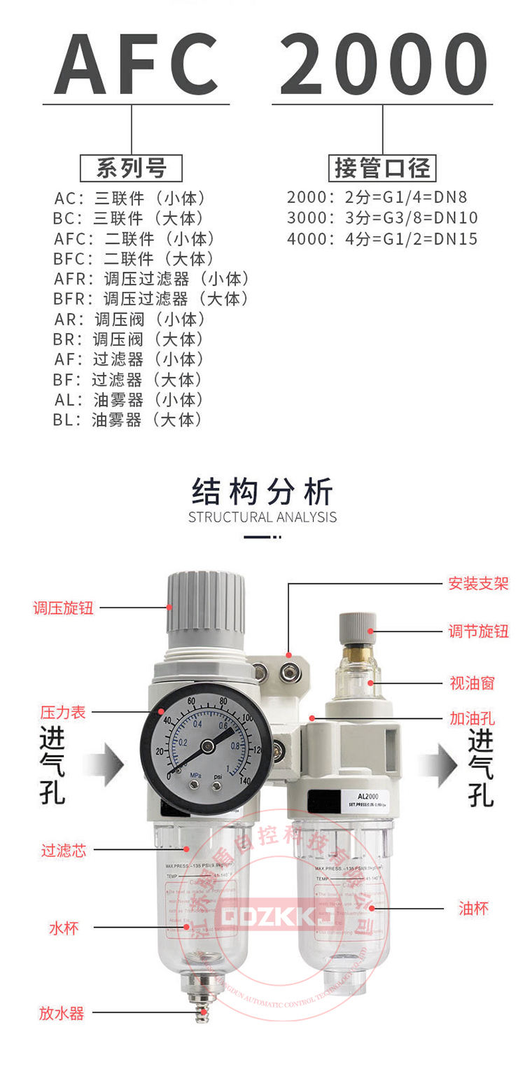 減壓閥可對氣源進行穩壓,使氣源處于恒定狀態,可減小因氣源氣壓突變時對閥門或執行器等硬件的損傷。過濾器用于對氣源的清潔,可過濾壓縮空氣中的水份,避免水份隨氣體進入裝置。